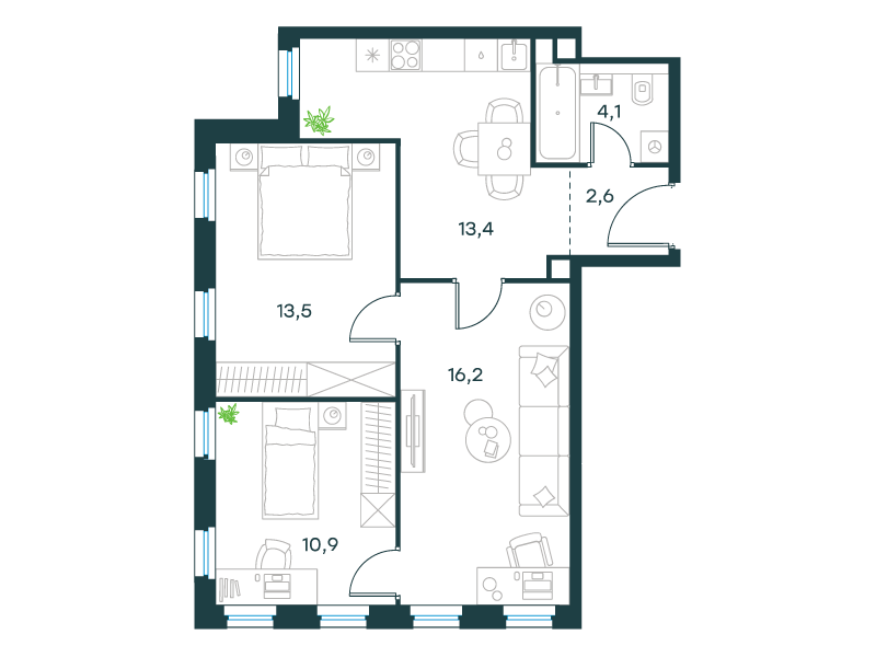 5 | Март 2027 | 1 | 26 | 13 | 13 | 1 | 33.6 | 15 977 147 | без отделки | ![]() | 13 | ||