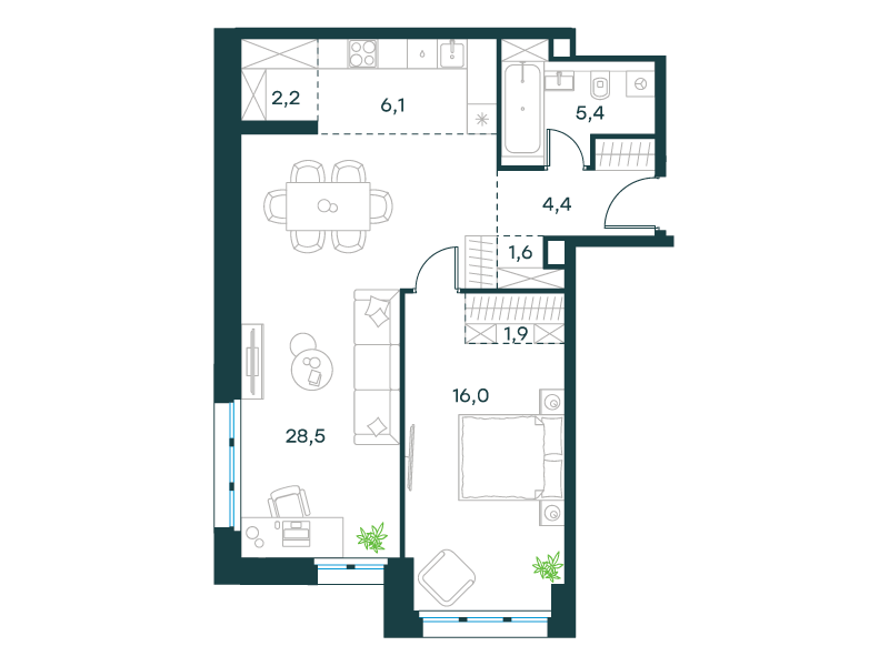 • Широкий выбор планировок – от студий до квартир с мастер-спальней, включая редкие форматы с террасой.