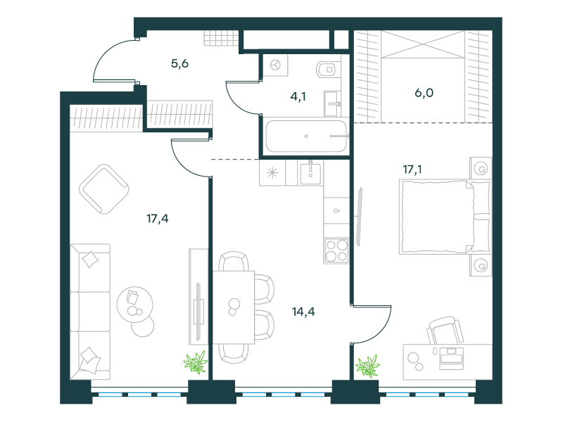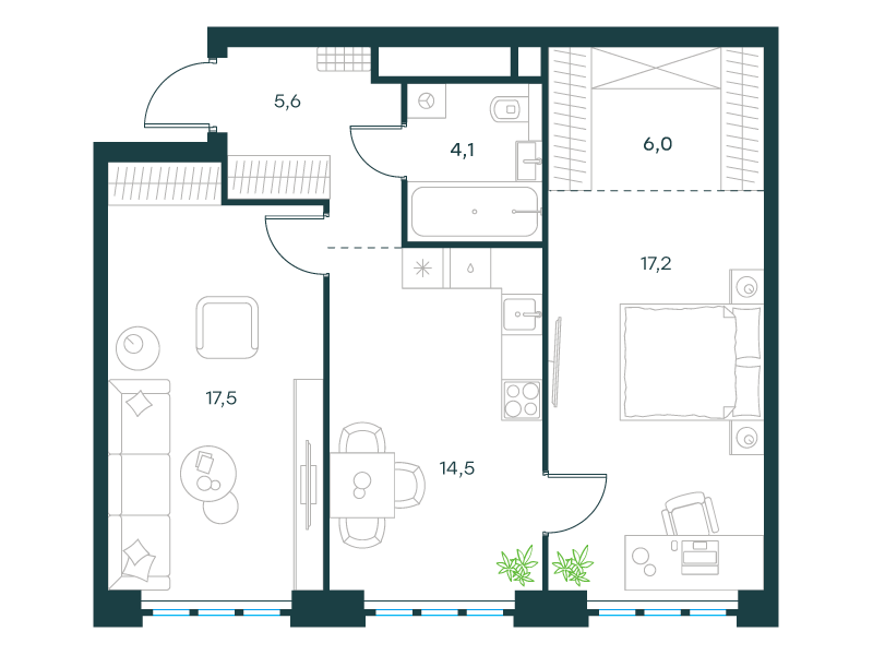 | 8 - (этап 1.2) | Май 2029 | 1 | 43 | 14 | 14 | 1 | 31.7 | 17 252 126 | без отделки | ![]() | 14 | ||