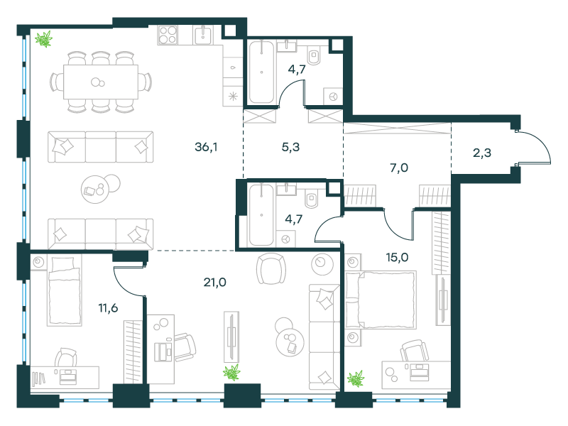| 2 | Декабрь 2027 | 1 | 47 | 7 | 7 | 4 | 81 | 33 662 906 | без отделки | ![]() | 7 | ||