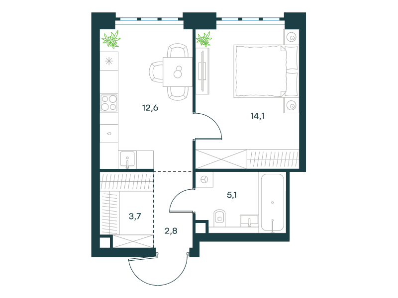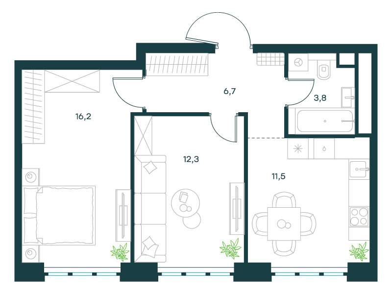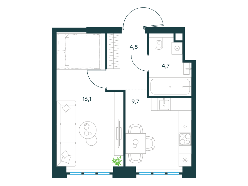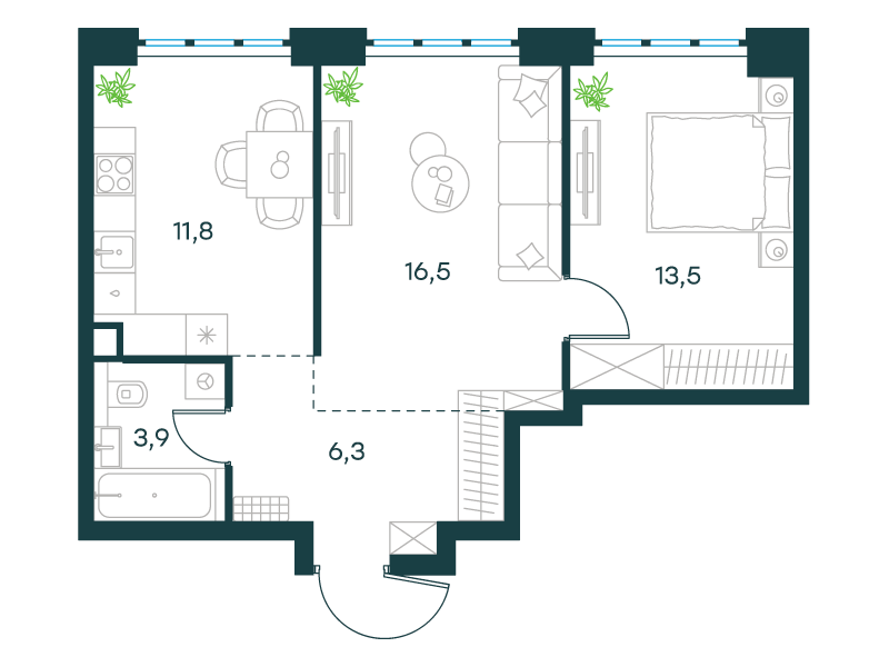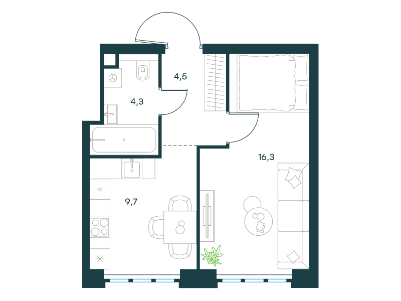 | 3 | Декабрь 2027 | 1 | 48 | 13 | 13 | 1 | 33.7 | 18 839 309 | без отделки | ![]() | 13 | ||