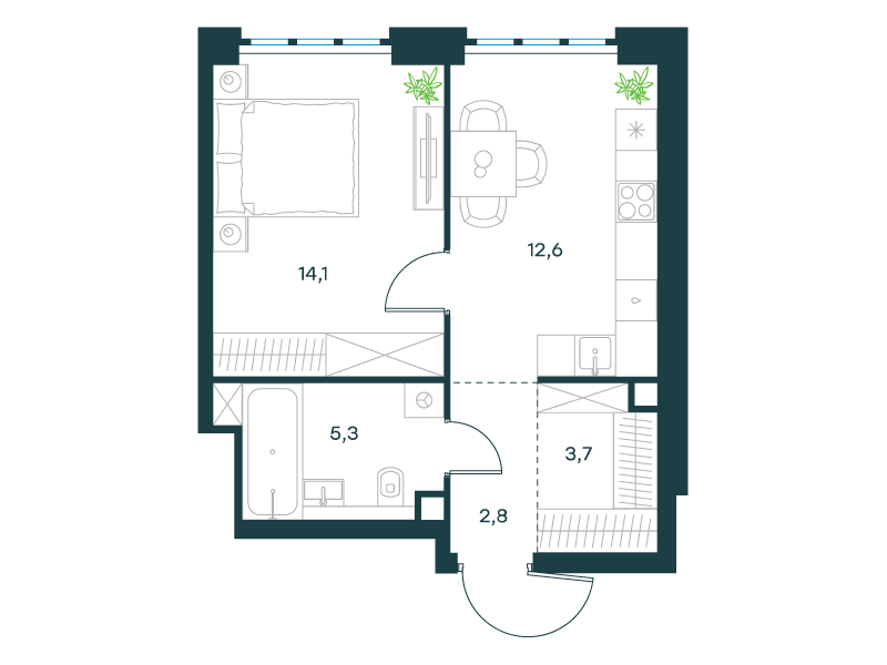 | 2 | Декабрь 2027 | 1 | 47 | 1 | 1 | 3 | 57.4 | 22 025 407 | без отделки | ![]() | 1 | ||
