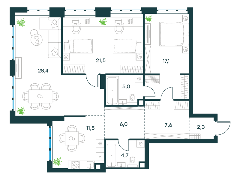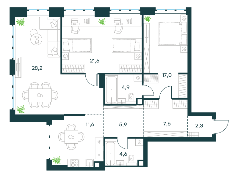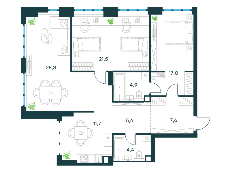 | 9 - (этап 1.2) | Июнь 2029 | 1 | 28 | 4 | 4 | 3 | 82.4 | 31 058 995 | с отделкой | ![]() | 4 | ||