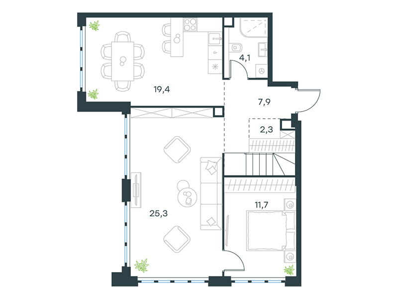| 8 - (этап 1.2) | Май 2029 | 1 | 47 | 7 | 7 | 3 | 68.3 | 25 749 430 | без отделки | ![]() | 7 | ||