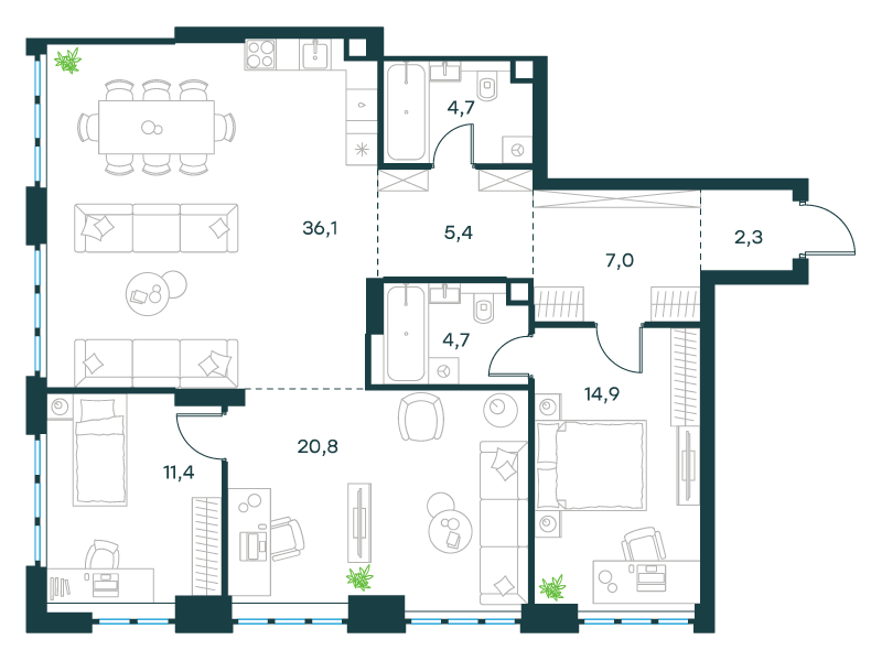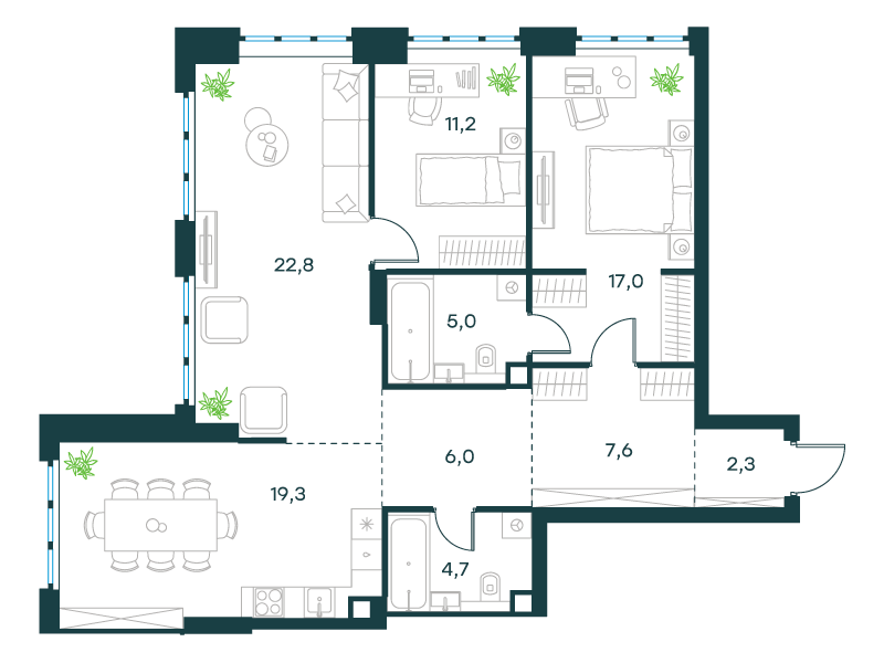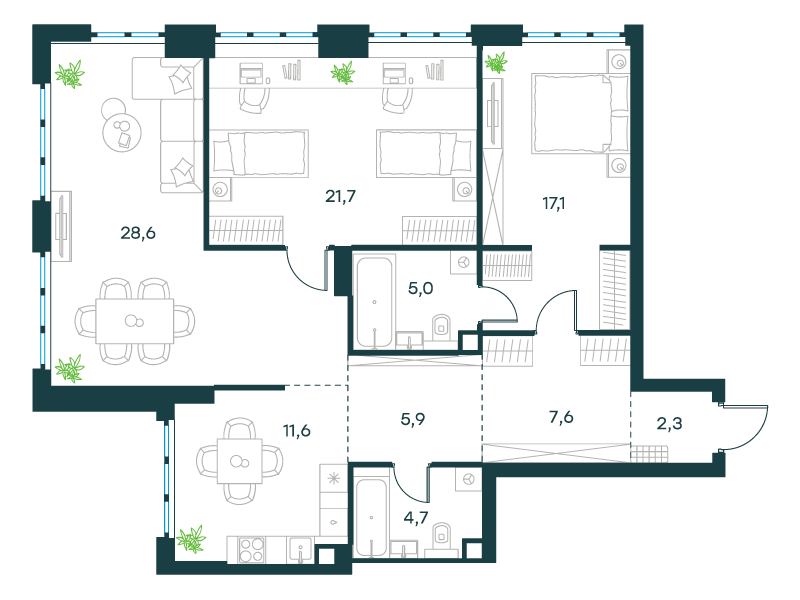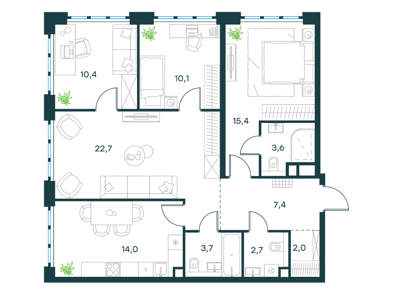 | 8 - (этап 1.2) | Май 2029 | 1 | 2 | 7 | 7 | 3 | 86 | 27 188 240 | без отделки | ![]() | 7 | ||