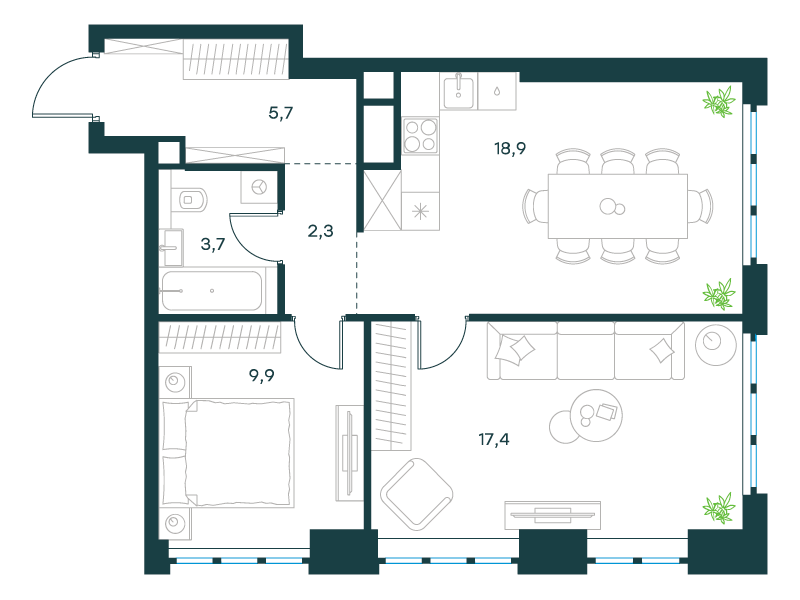 | 8 - (этап 1.2) | Май 2029 | 1 | 47 | 9 | 9 | 1 | 38.8 | 18 746 637 | без отделки | ![]() | 9 | ||