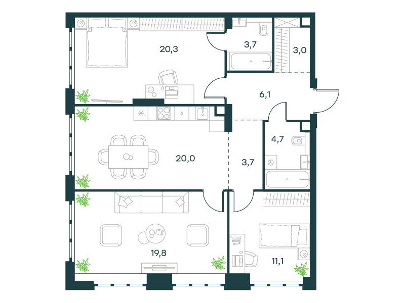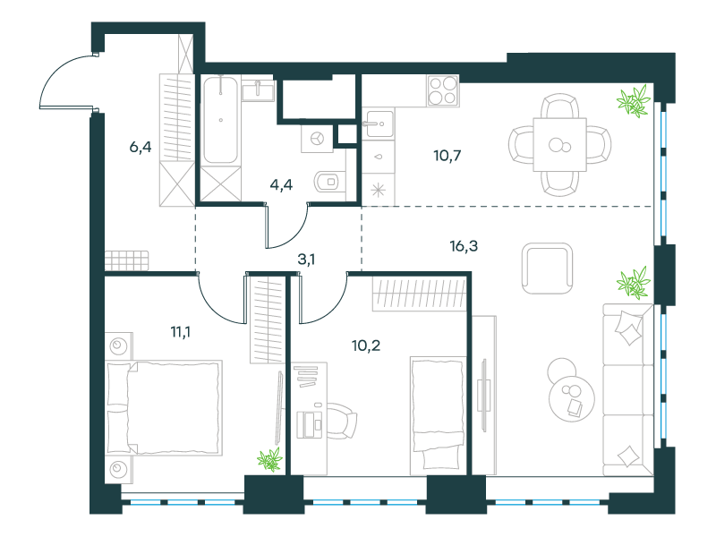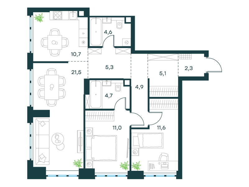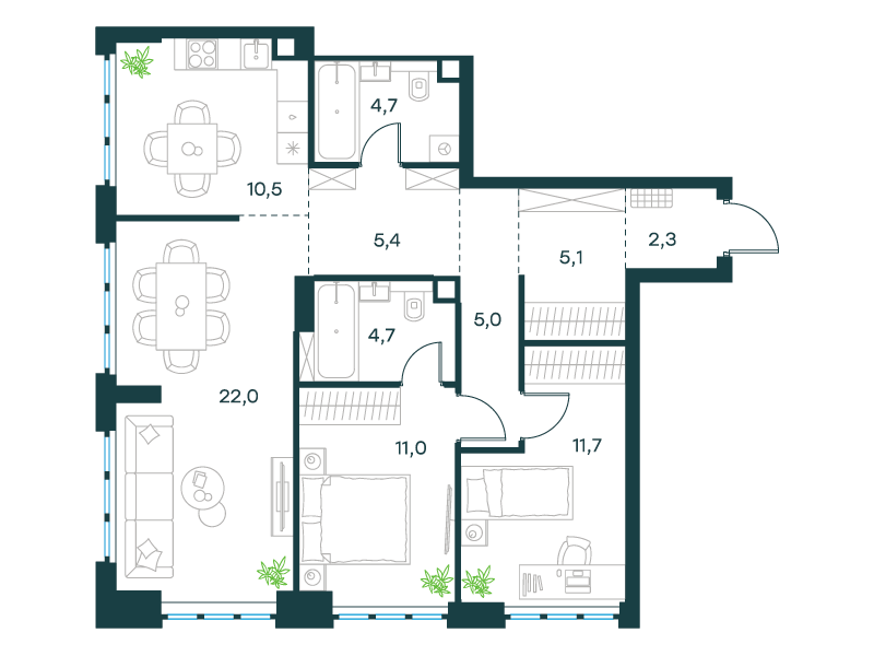 | 3 | Декабрь 2027 | 1 | 68 | 10 | 10 | 4 | 114 | 52 543 346 | без отделки | ![]() | 10 |