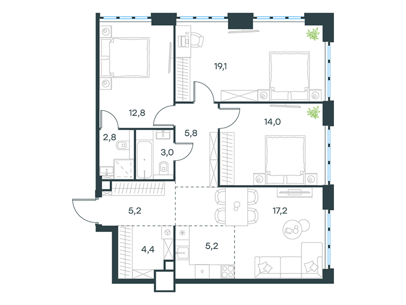 | 8 - (этап 1.2) | Май 2029 | 1 | 19 | 13 | 13 | 3 | 63.9 | 24 104 209 | без отделки | ![]() | 13 | ||