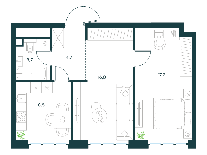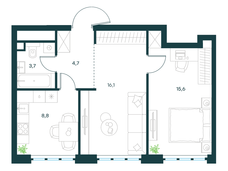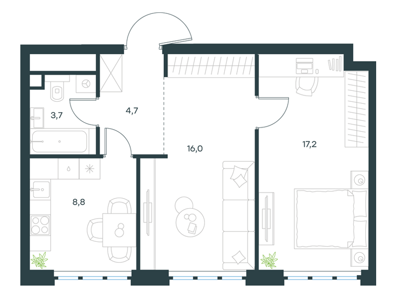 | 8 - (этап 1.2) | Май 2029 | 1 | 47 | 2 | 2 | 1 | 42.7 | 20 187 738 | без отделки | ![]() | 2 | ||