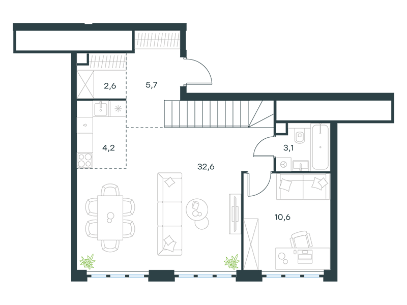 | 12 - (этап 3) | Июнь 2029 | 1 | 6 | 10 | 10 | 1 | 47.7 | 19 378 352 | без отделки | ![]() | 10 | ||