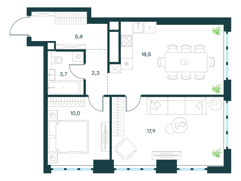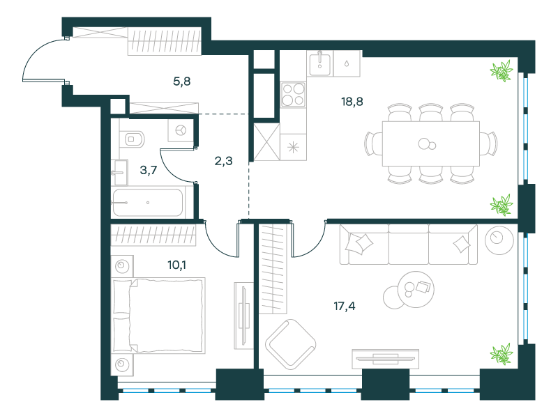 | 8 - (этап 1.2) | Май 2029 | 1 | 45 | 10 | 10 | 1 | 38.5 | 18 229 040 | без отделки | ![]() | 10 | ||
