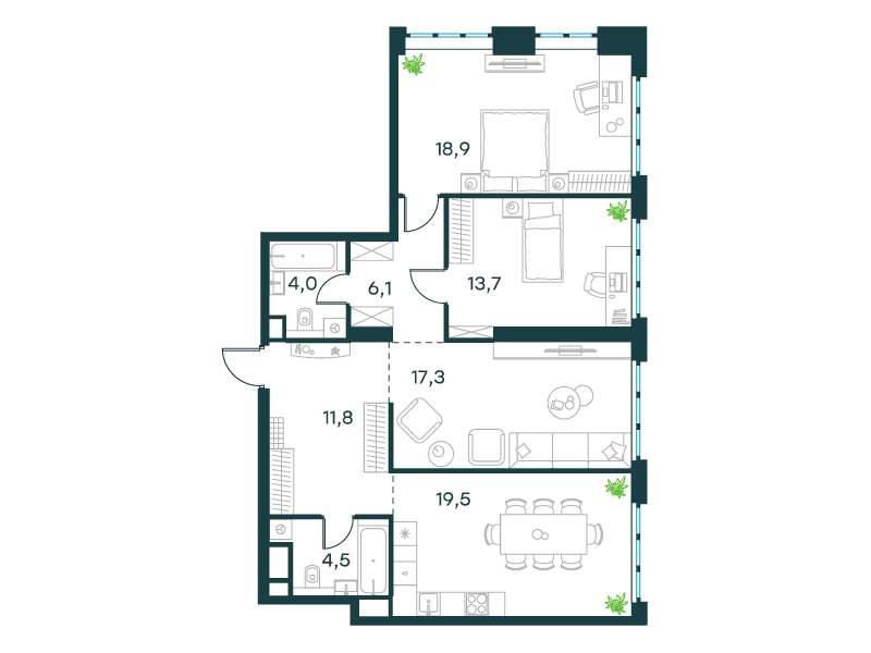 | 8 - (этап 1.2) | Май 2029 | 1 | 19 | 11 | 11 | 1 | 39.3 | 18 004 333 | без отделки | ![]() | 11 | ||