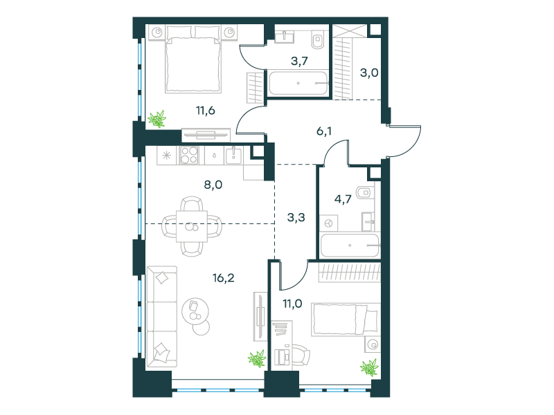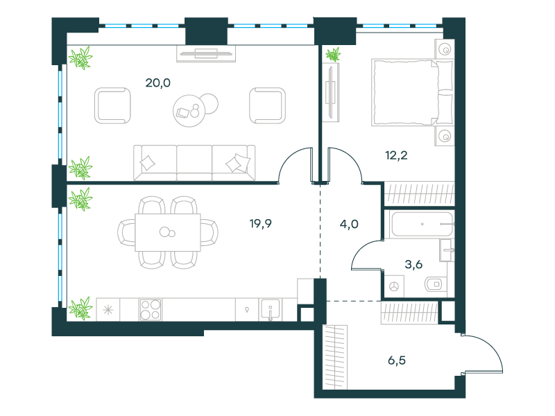 | 8 - (этап 1.2) | Май 2029 | 1 | 6 | 7 | 7 | 3 | 67.6 | 23 300 060 | без отделки | ![]() | 7 | ||