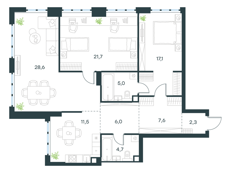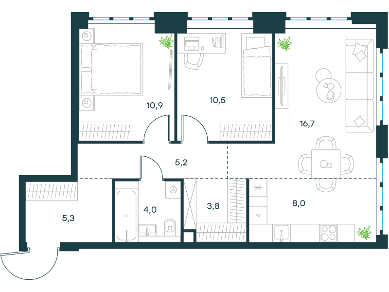 | 8 - (этап 1.2) | Май 2029 | 1 | 3 | 7 | 7 | 3 | 86 | 28 082 619 | без отделки | ![]() | 7 | ||