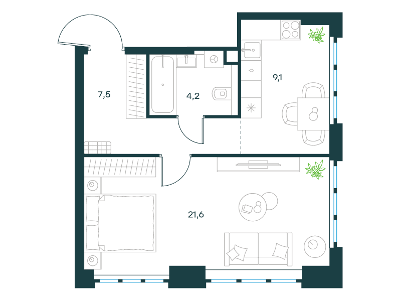 | 9 - (этап 1.2) | Июнь 2029 | 1 | 21 | 5 | 5 | 3 | 95.9 | 34 565 368 | с отделкой | ![]() | 5 | ||