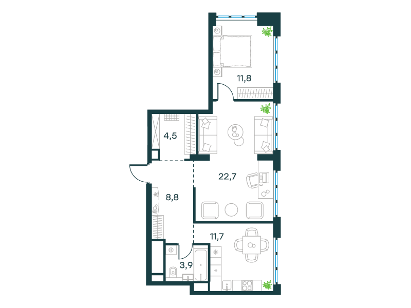 | 8 - (этап 1.2) | Май 2029 | 1 | 22 | 8 | 8 | 3 | 84.6 | 30 038 804 | без отделки | ![]() | 8 | ||