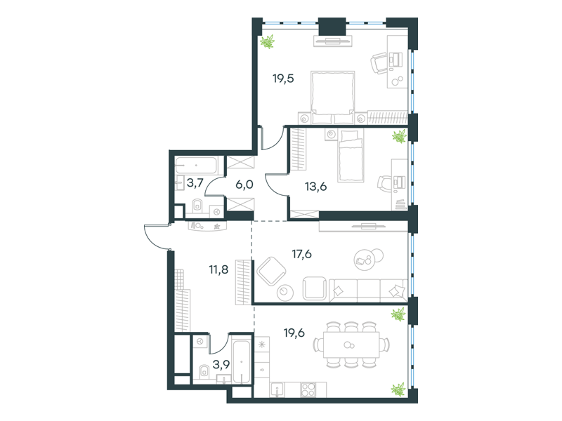 | 12 - (этап 3) | Июнь 2029 | 1 | 6 | 8 | 8 | 1 | 35.1 | 17 917 029 | без отделки | ![]() | 8 | ||