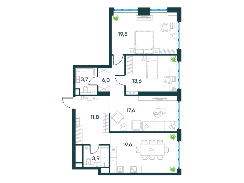 | 9 - (этап 1.2) | Июнь 2029 | 1 | 6 | 8 | 8 | 3 | 95.8 | 31 569 801 | с отделкой | ![]() | 8 | ||