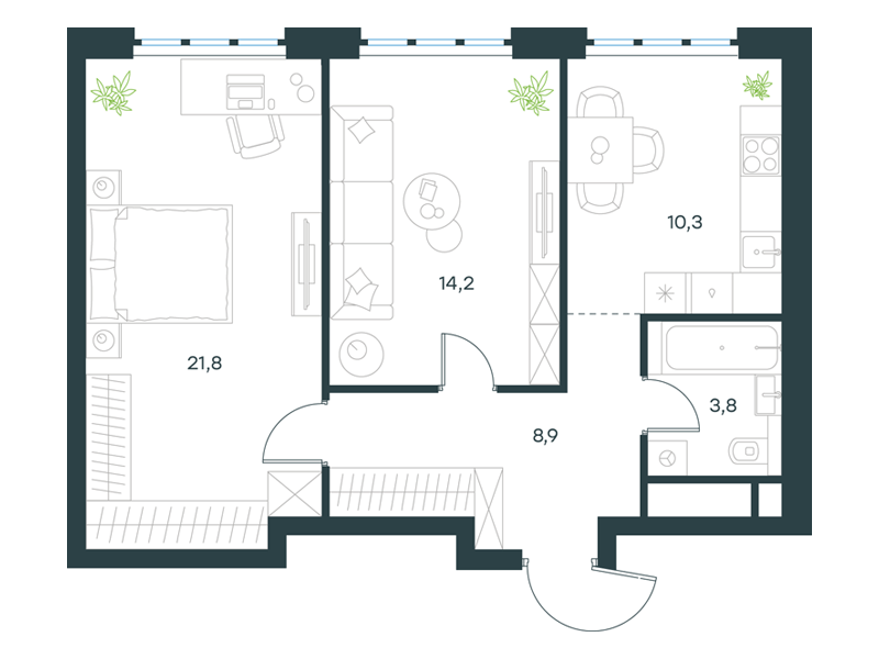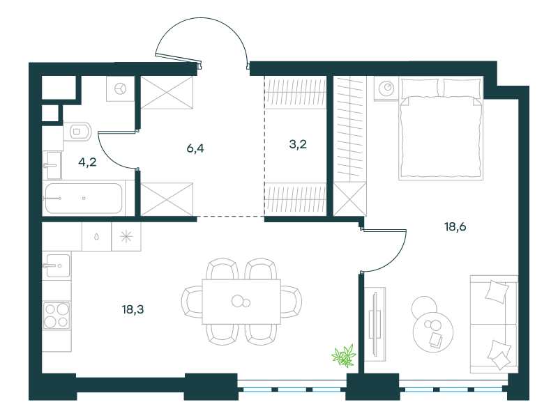 | 8 - (этап 1.2) | Май 2029 | 1 | 42 | 3 | 3 | 1 | 35.3 | 18 574 839 | без отделки | ![]() | 3 | ||
