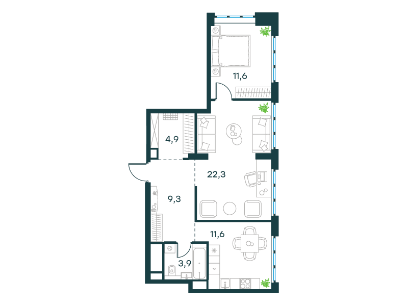 | 12 - (этап 3) | Июнь 2029 | 1 | 8 | 5 | 5 | 3 | 69.3 | 25 835 639 | без отделки | ![]() | 5 | ||