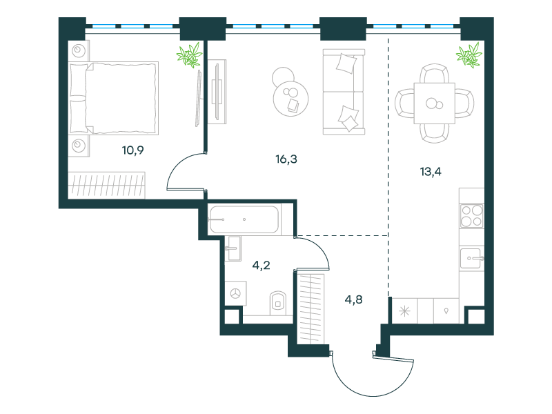 | 3 | Декабрь 2027 | 1 | 48 | 13 | 13 | 1 | 33.7 | 17 677 043 | без отделки | ![]() | 13 | ||