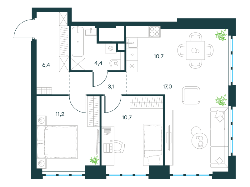 | 12 - (этап 3) | Июнь 2029 | 1 | 10 | 7 | 7 | 1 | 35.6 | 17 268 368 | без отделки | ![]() | 7 | ||