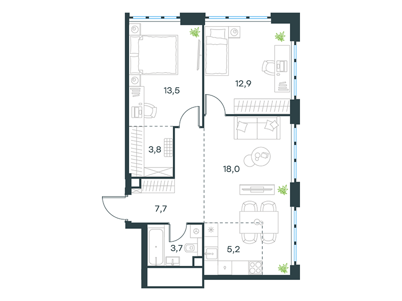 | 8 - (этап 1.2) | Май 2029 | 1 | 18 | 8 | 8 | 1 | 38.5 | 17 029 688 | без отделки | ![]() | 8 | ||