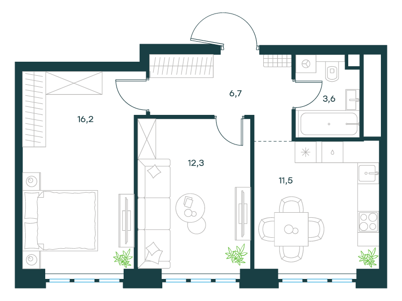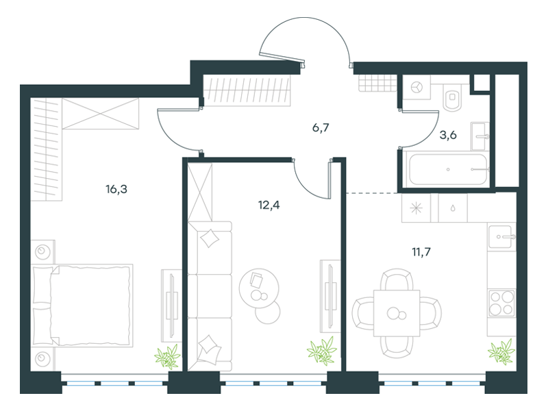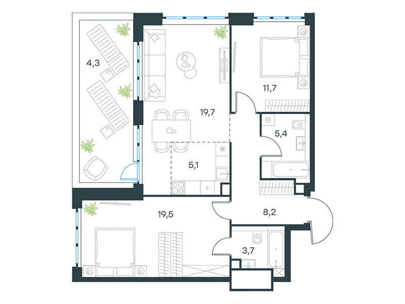 | 8 - (этап 1.2) | Май 2029 | 1 | 43 | 7 | 7 | 3 | 68.3 | 26 502 550 | без отделки | ![]() | 7 | ||
