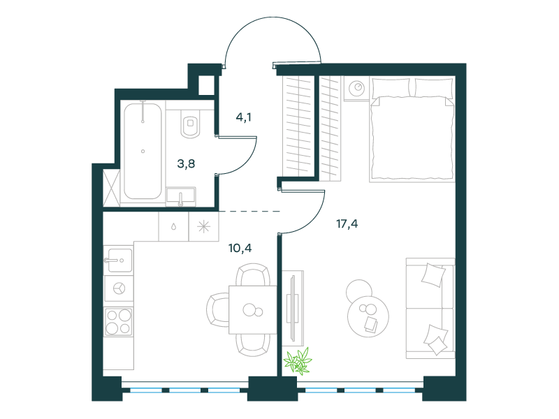 | 8 - (этап 1.2) | Май 2029 | 1 | 38 | 4 | 4 | 1 | 34.8 | 17 085 065 | без отделки | ![]() | 4 | ||