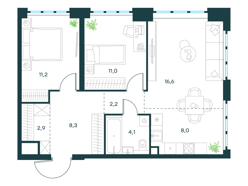 | 8 - (этап 1.2) | Май 2029 | 1 | 28 | 11 | 11 | 2 | 49.6 | 19 058 624 | без отделки | ![]() | 11 | ||
