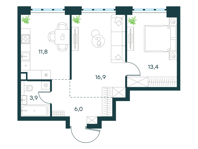 | 8 - (этап 1.2) | Май 2029 | 1 | 42 | 13 | 13 | 3 | 64.9 | 26 623 022 | без отделки | ![]() | 13 | ||