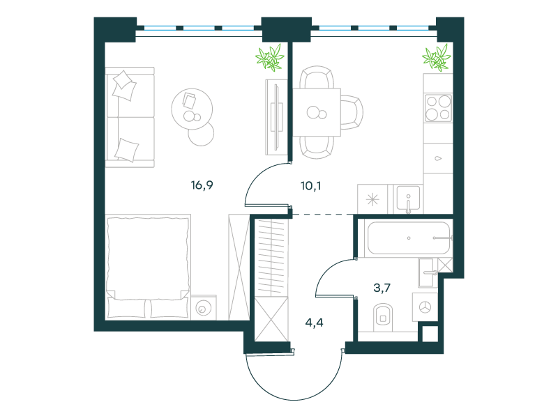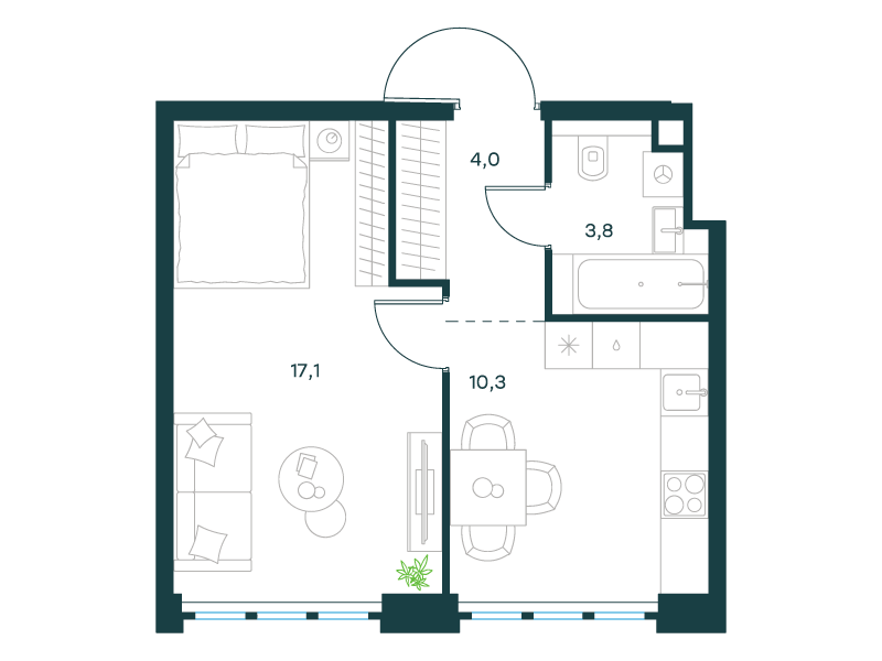 35.7 м² · 1 комната · 3/20 этаж · Июнь 2029