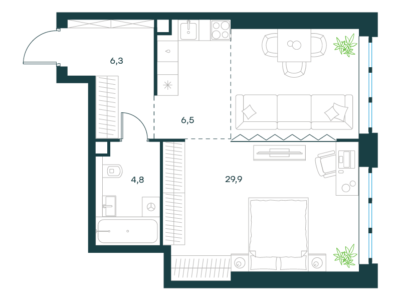 37 м² · 1 комната · 4/69 этаж · Декабрь 2029
