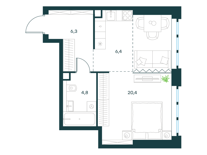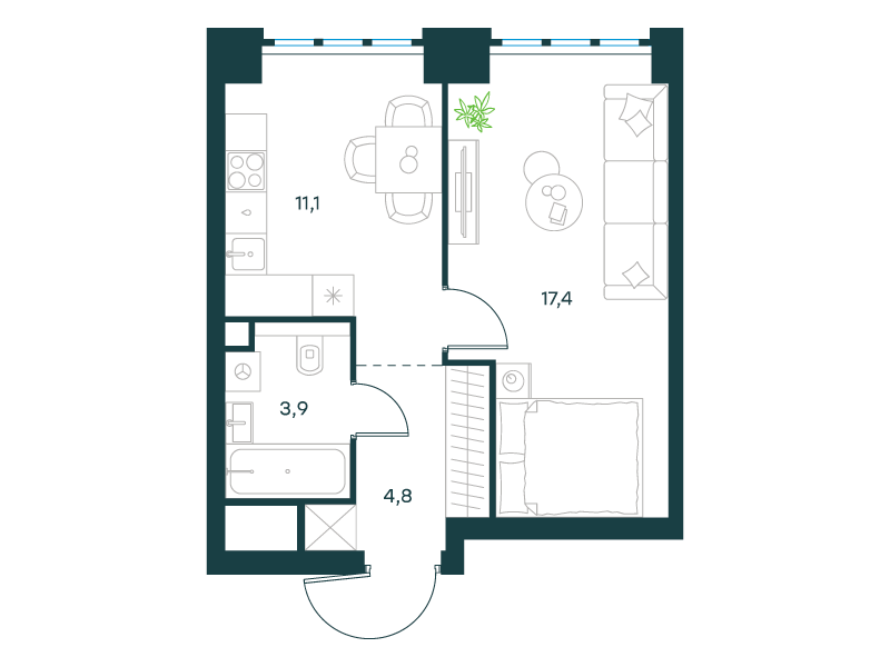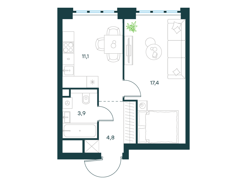 ГлавнаяЖилая недвижимостьLevel Южнопортовая ЖК1-комнатная квартира № 4