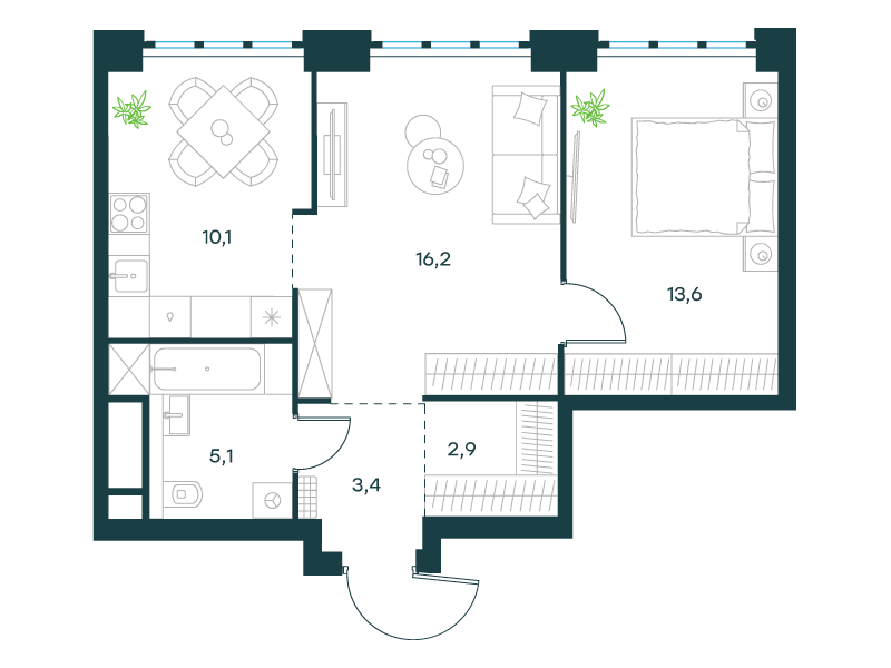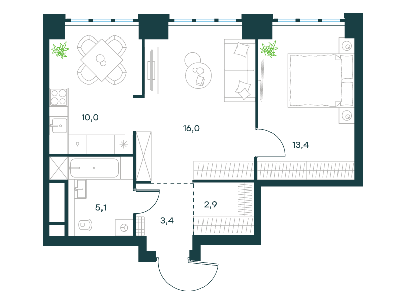 ГлавнаяЖилая недвижимостьLevel Южнопортовая ЖК2-комнатная квартира № 12