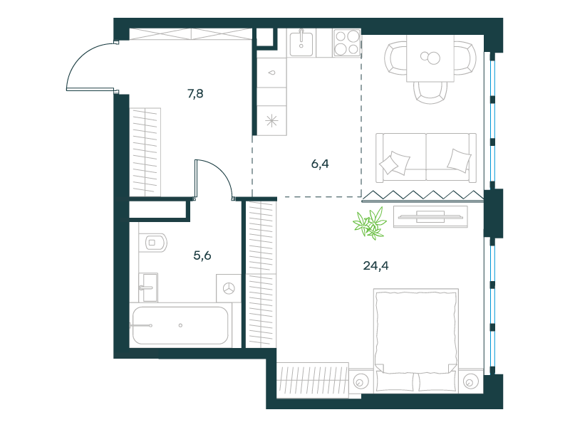 ГлавнаяЖилая недвижимостьLevel Южнопортовая ЖК1-комнатная квартира № 14