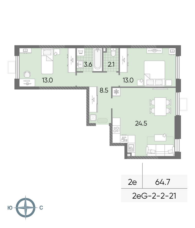 ГлавнаяЖилая недвижимостьЖК «ЛУЧИ»2-комнатная квартира № 2