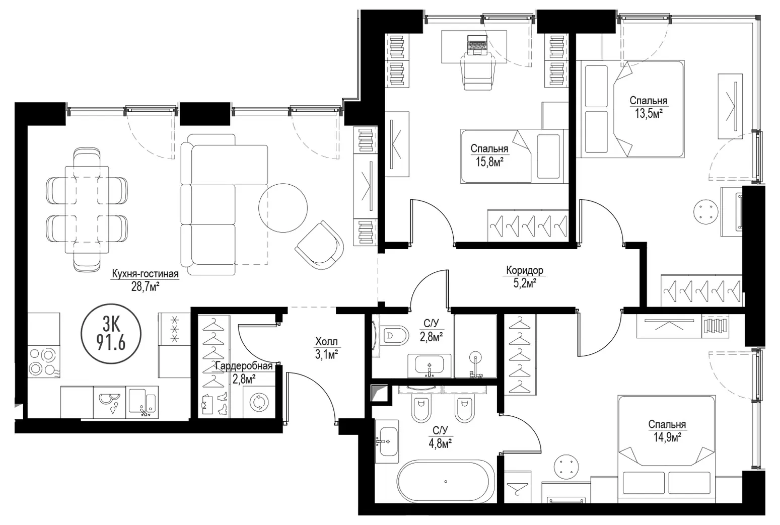 ГлавнаяЖилая недвижимость«Метрополия» ЖК3-комнатная квартира № 606