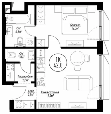 41.5 м² · 1 комната · 17/30 этаж · Объект сдан