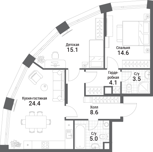 Комнат: Студия / 1 / 2 / 3 / 4 / 5