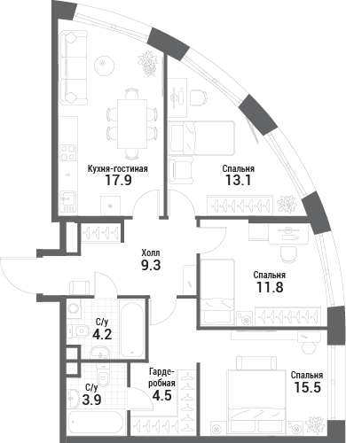 80.2 м² · 3 комнаты · 20/35 этаж · Июнь 2027