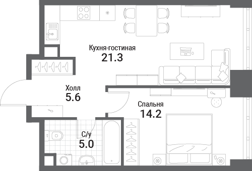 46.1 м² · 1 комната · 12/19 этаж · Июнь 2027