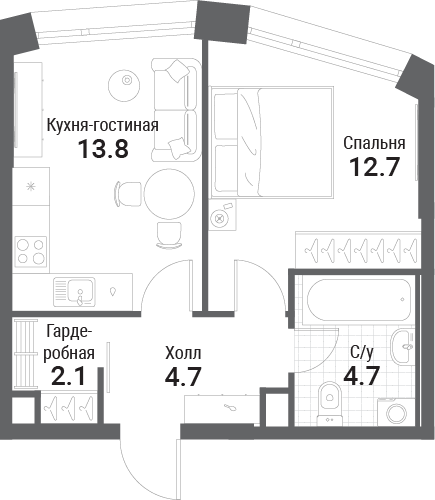 30.7 м² · 1 комната · 31/35 этаж · Июнь 2027