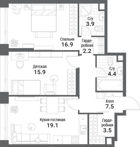 Стартовали скидки 15% на готовые квартиры с отделкой. Теперь купить однокомнатную квартиру 44 кв. м можно с выгодой до 1,7 млн рублей.