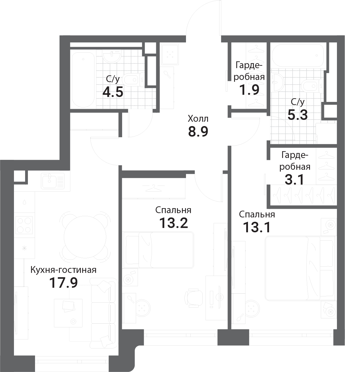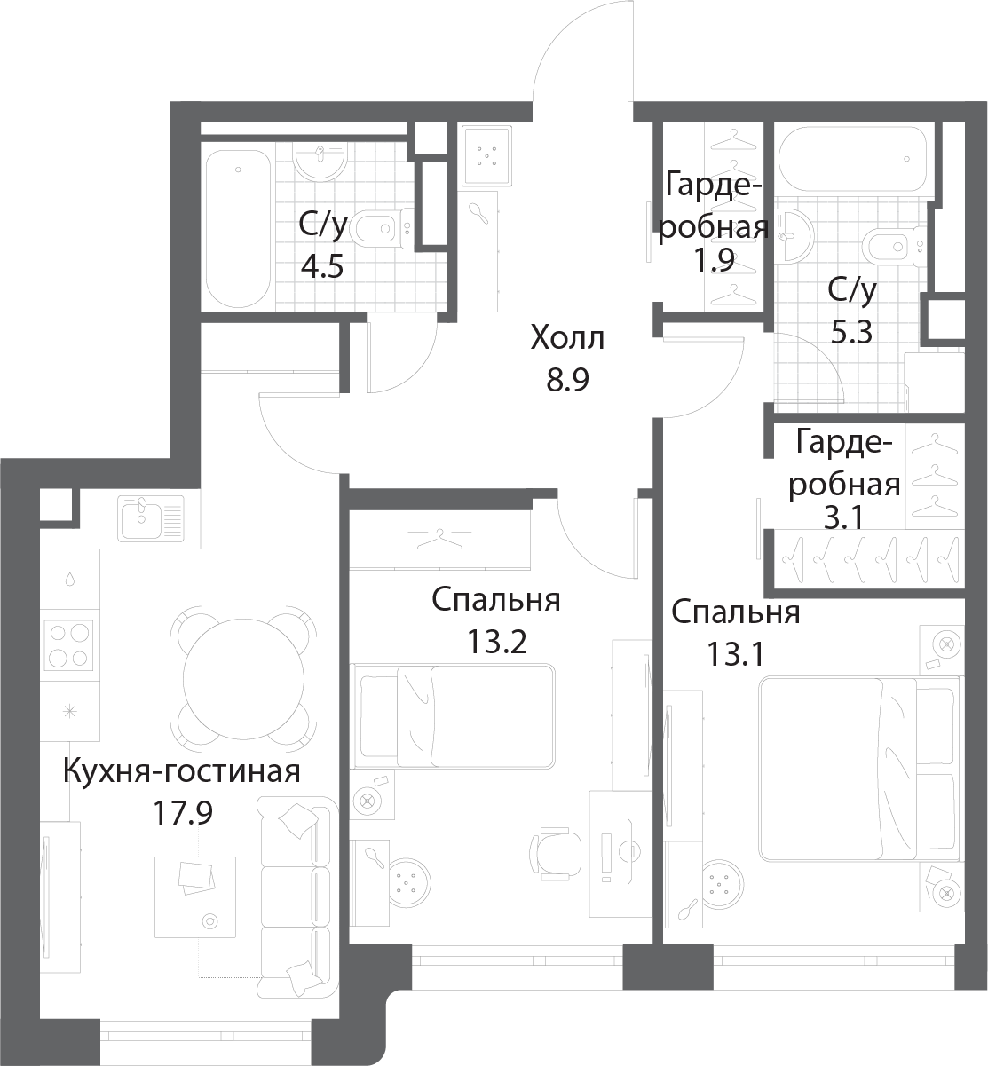 67.9 м²