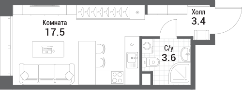 24.5 м² · 1 комната · 31/35 этаж · Июнь 2027