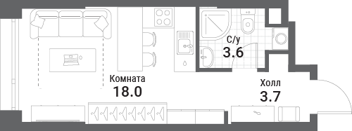 Продажа 1-комнатной квартиры № 4, 25.3 кв.м, этаж 12/35 в ЖК «Нагатино Ай‑Лэнд» (Nagatino I‑Land)