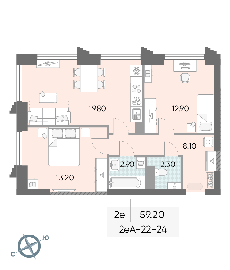 ГлавнаяЖилая недвижимостьЖК "Обручева 30"2-комнатная квартира № 4