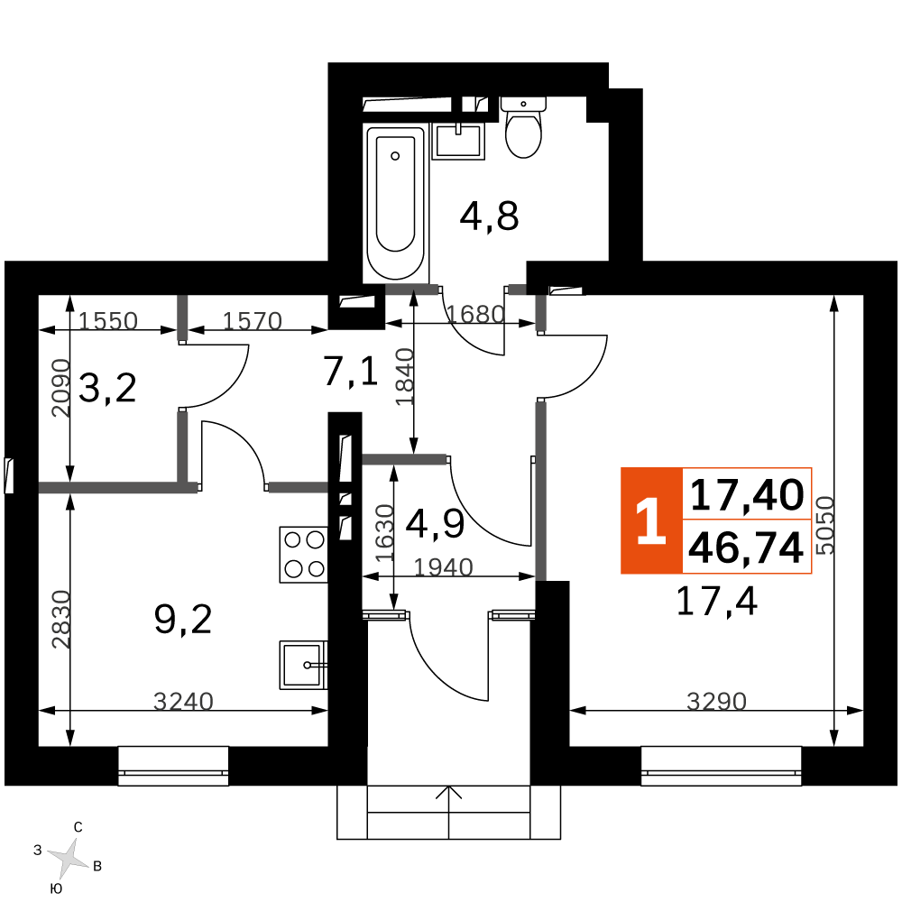 | 46 | Сентябрь 2025 | 3 | 1 | 3 | 3 | 2 | 55.02 | 15 680 700 | без отделки | ![]() | 3 | ||