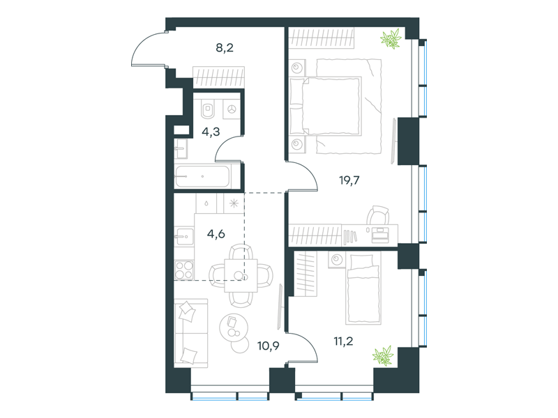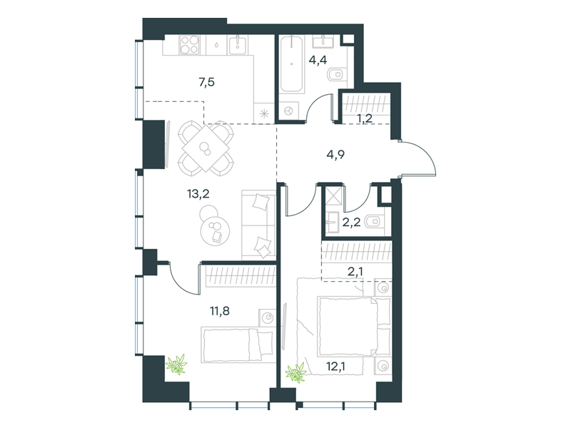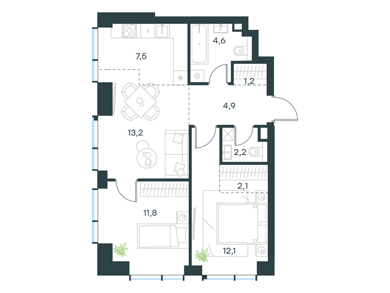 | К14 - "Контраст" | Март 2028 | 1 | 2 | 8 | 8 | 4 | 90.8 | 58 482 303 | без отделки | ![]() | 8 | ||